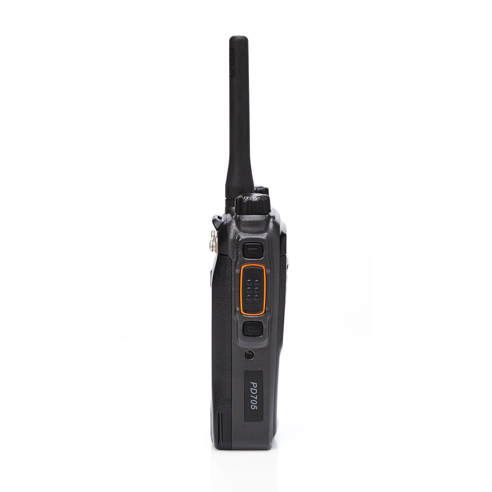 mode. This assignment of the available bandwidth, with double the number of channels, leads to more availability within the same assigned frequencies in DMR systems, compared to analogue.Versatile – Supports Digital and Analogue Operating Modes – The PD705 operates in both an analogue mode and a digital mode and is compatible with analogue radio systems, making migration to digital simple. Along with conventional DMR (DMR Tier II), the radios also support analogue trunked radio as per MPT1327 and DMR trunked radio (Tier III) via chargeable licence. In addition, they can be used in Hytera XPT and simulcast systems.GPS and man-down – The PD705G is equipped with GPS and man-down features, making it a perfect radio for larger systems with a Hytera SmartDispatch console.Outstanding build quality – The PD705’s high-quality chassis and body confirms to both IP67 and MIL-STD-810G standards, ensuring performance in the harshest environments.